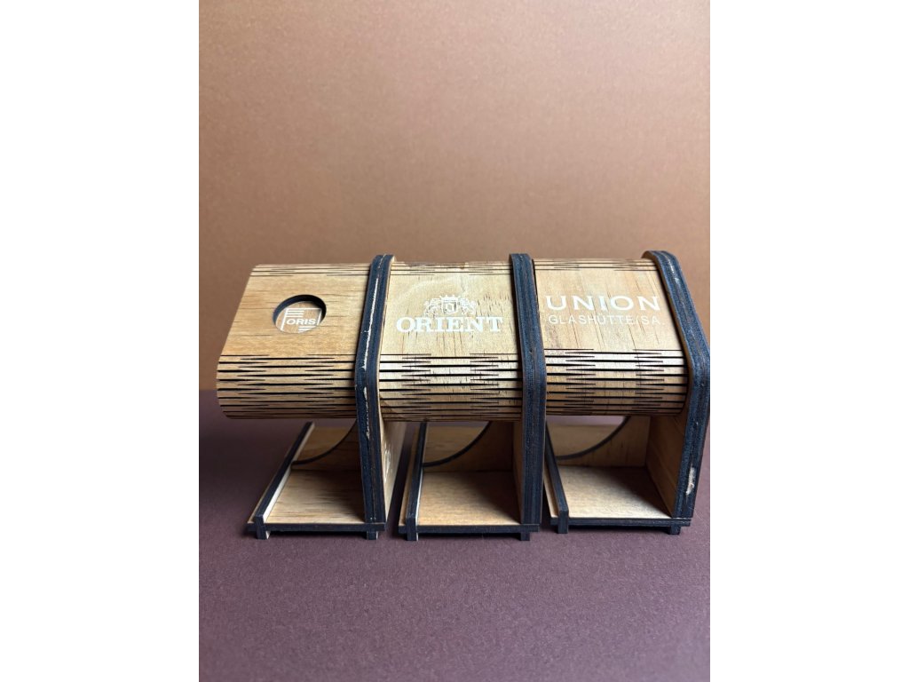 Stojánek na hodinky celý dle vašeho přání. Přizpůsobíme jej celý vašim potřebám. Barvu dřeva, velikost nebo například logo či text.